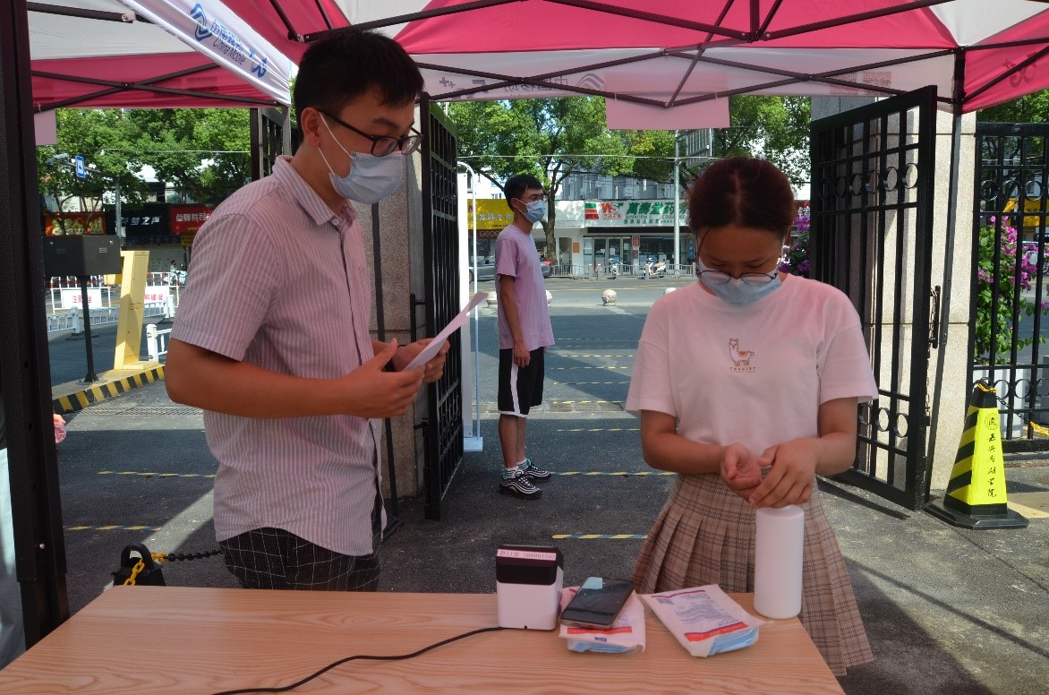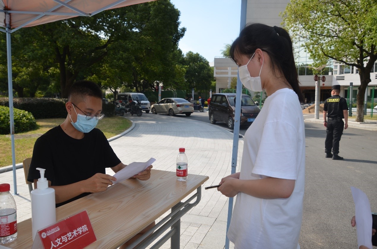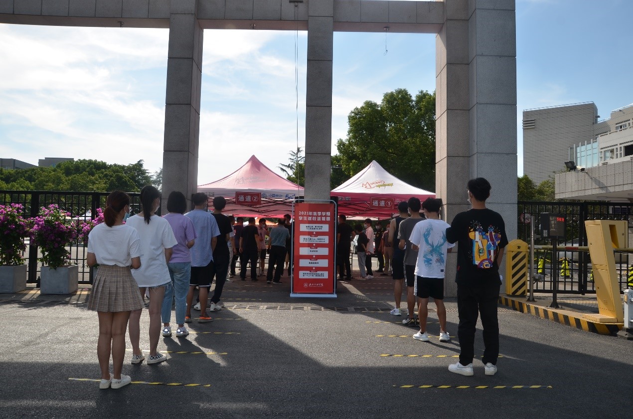 演练现场,工作人员根据疫情防控相关要求依次查验学生行程码、健康码,查看省外返校学生48小时核酸检测报告,对学生进行体温检测和手部消毒,引导学生到各学院报到。针对行程码、健康码异常的学生,工作人员按照学校疫情防控应急方案处置流程引导该学生前往第三通道,进行体温检测,并根据结果按流程办理学生入校或留观工作,确保突发状况第一时间得到有效控制。此外,此次演练还模拟了学生在教室或在食堂出现发热情况的应急处置。