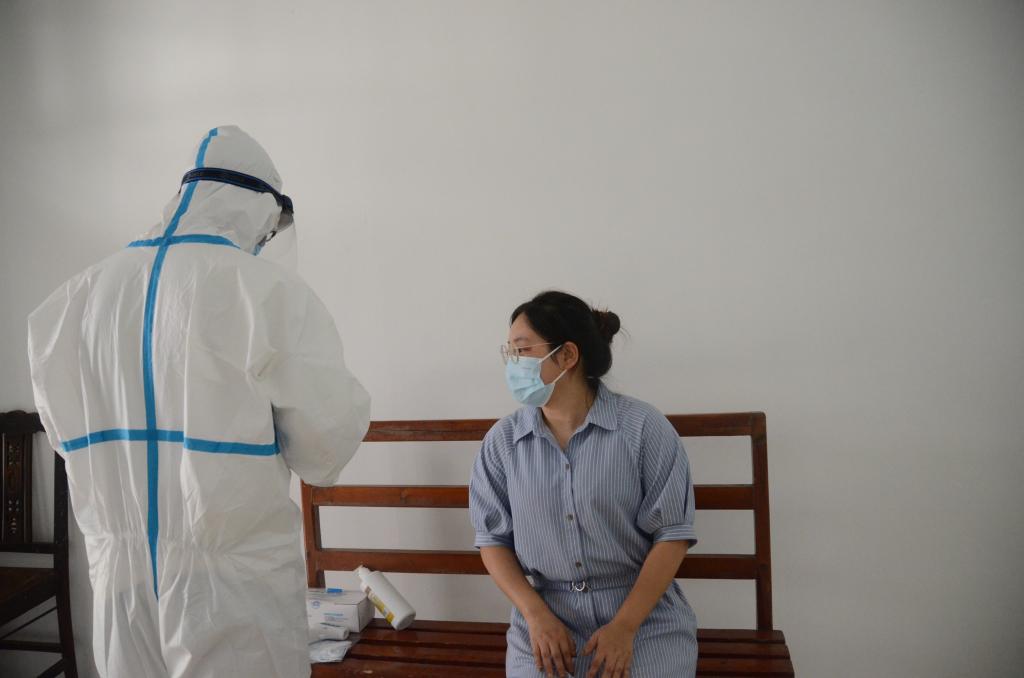 医护人员对体温异常学生进行复测