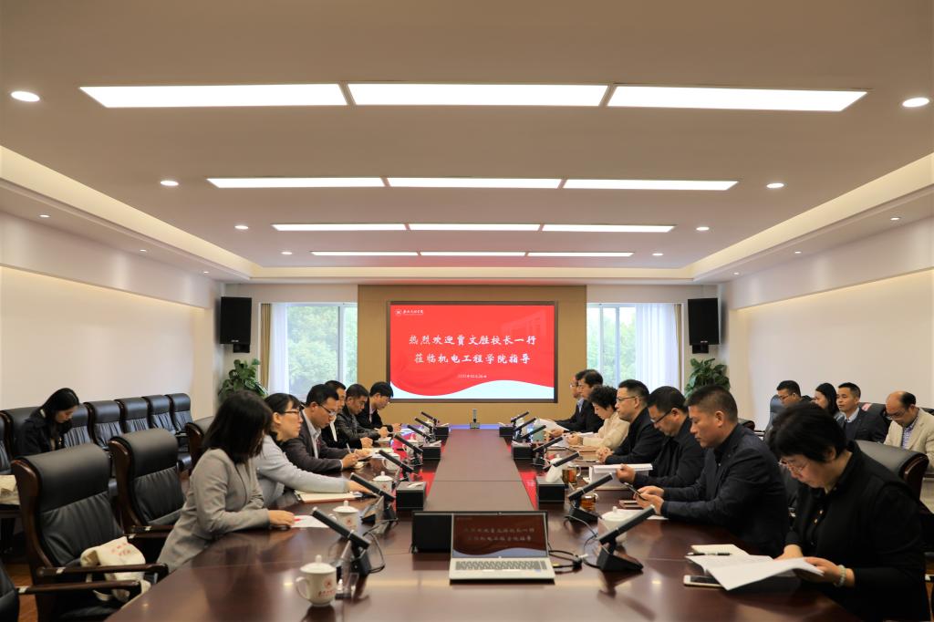 10月26日上午,校长贾文胜带队走访机电工程学院并召开座谈会。校党委副书记胡文蔚、副校长朱蓉、陈加明及相关部门负责人陪同调研。机电工程学院相关负责人及教师代表参加调研。