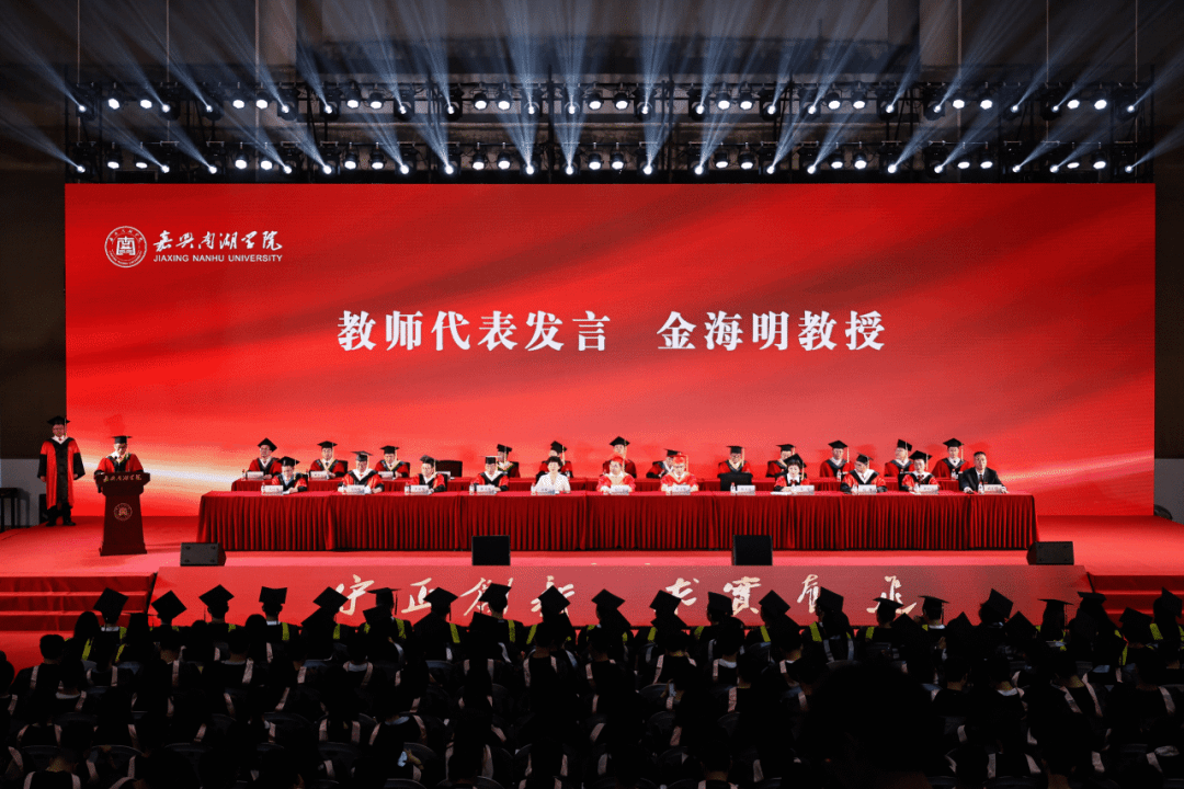 “四年来,我们共同见证了学校成功转设公办本科高校的高光时刻,共同度过了一段美好又难忘的青春岁月,共同见证了每一位同学的成长和收获。”时尚设计学院院长金海明作为教师代表发言,他用涵养德行之美、筑牢理想信念,弘扬专业之美、服务国家社会,锻造性情之美、不断提升自我“三个美”寄语2024届毕业生。