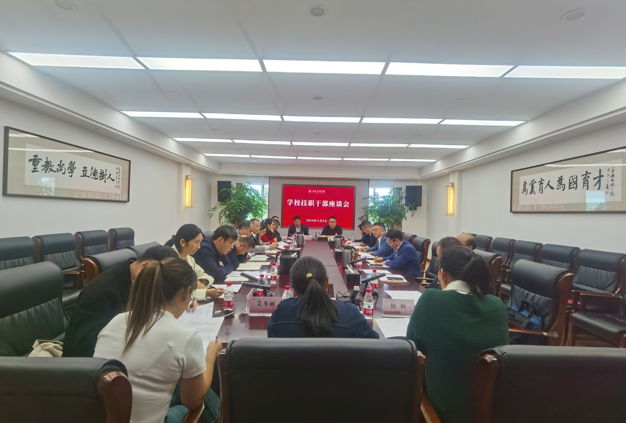 11月8日,学校召开挂职干部座谈会,校党委副书记沈岱峰主持会议并讲话,组织部、人事处和二级党组织相关负责人参加会议。