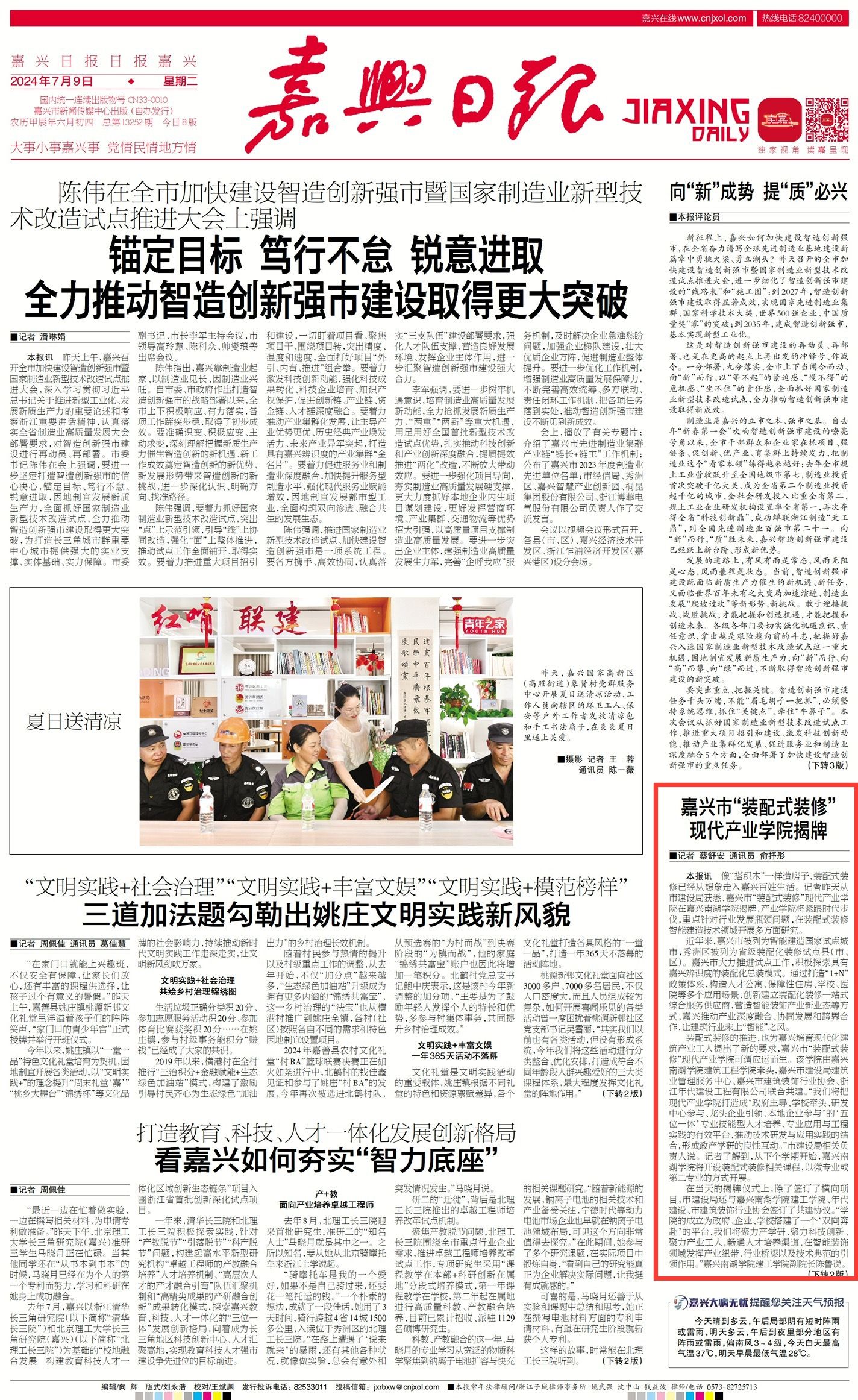 嘉兴日报:嘉兴市“装配式装修”现代产业学院揭牌
